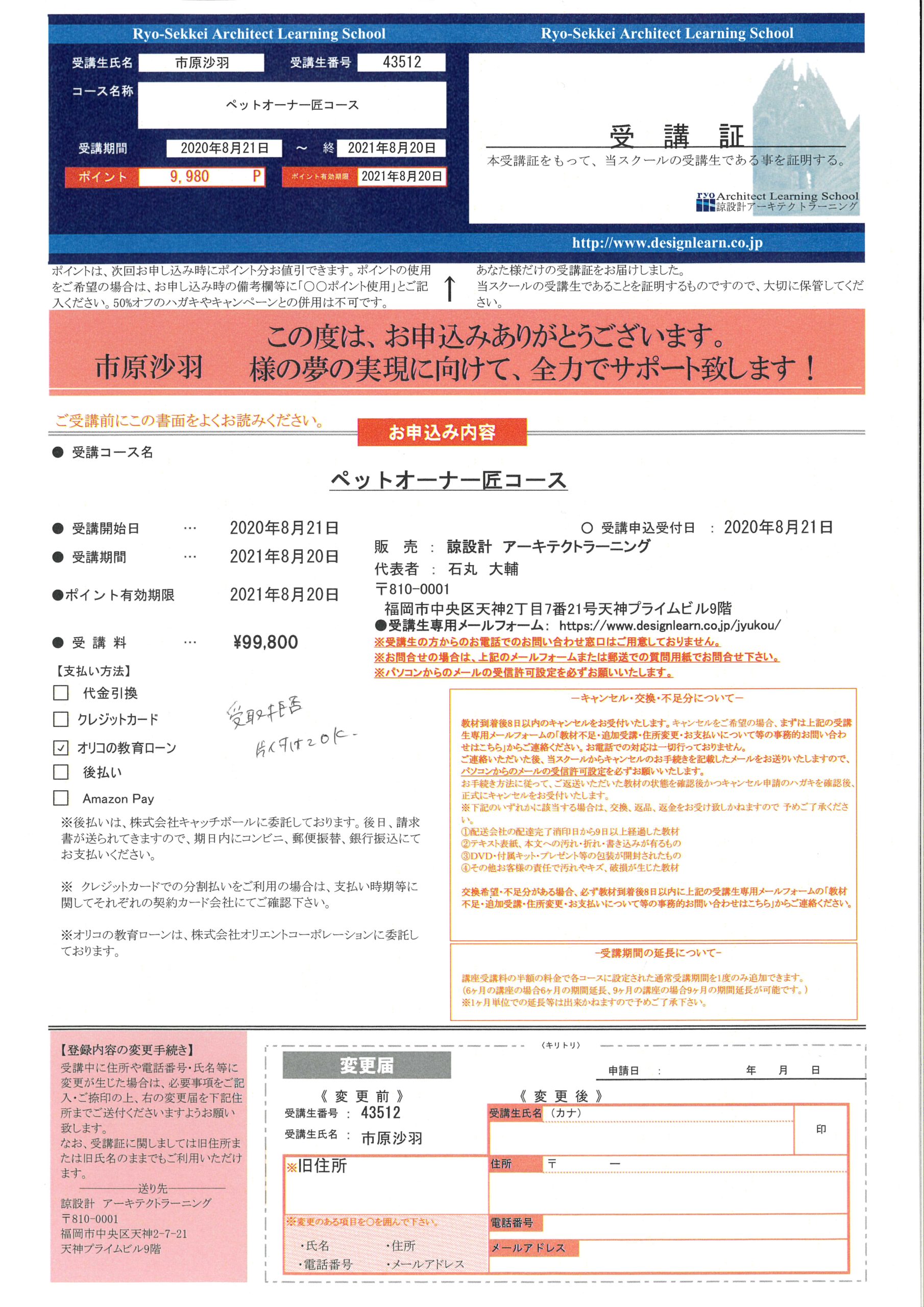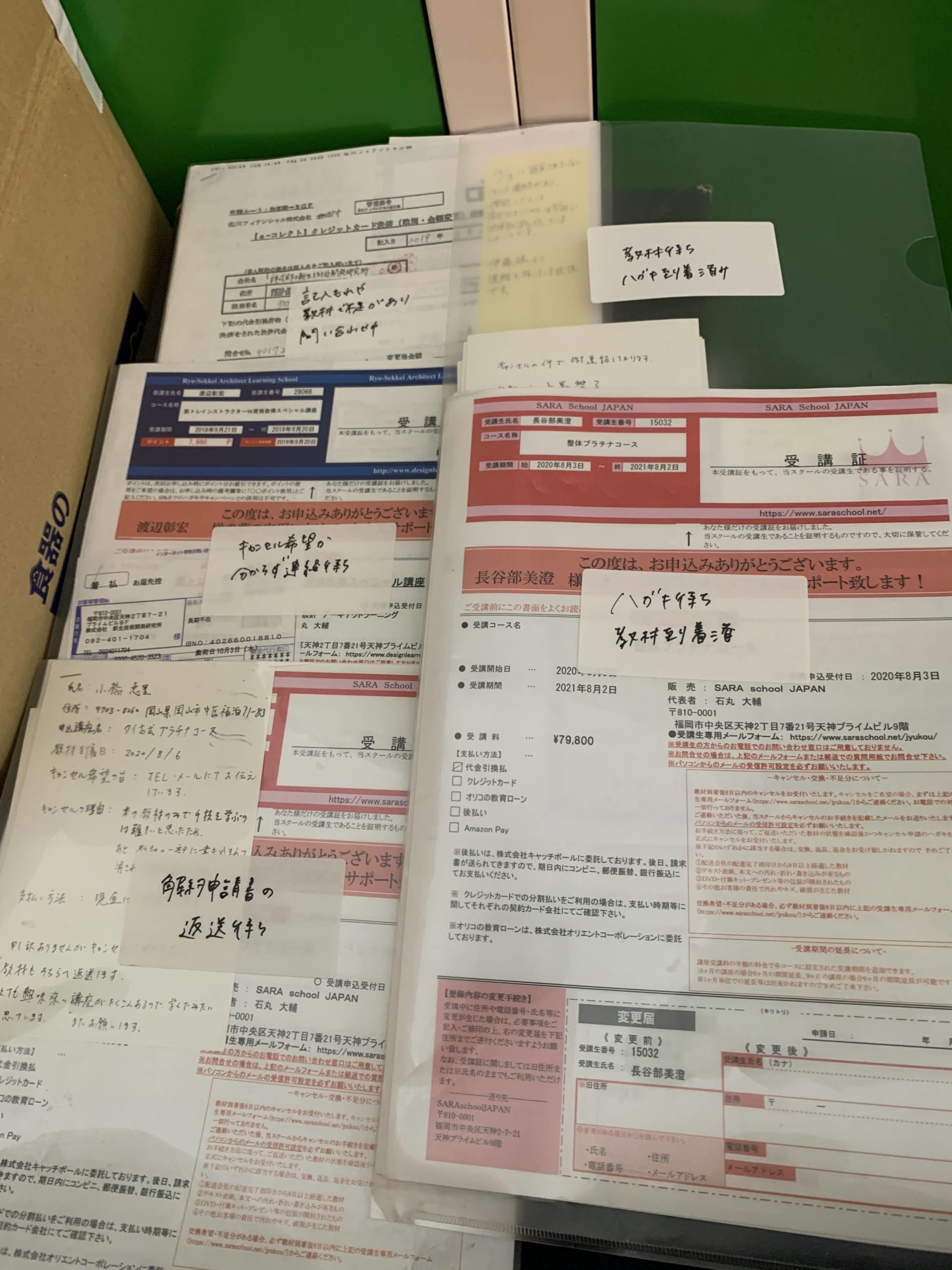 また、それぞれお客様がどのような状態で返送したかの報告を受けるので、その内容を受講証に書き込んでおく。ただし、キャンセル不可で受講証をお客様に返送しないといけないので、その受講証をコピーして、コピーした受講証に書き込んでおく。