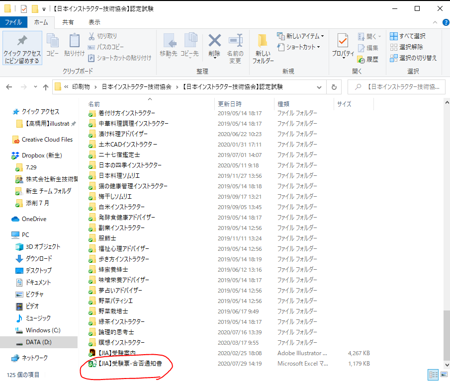 次に、受験票を印刷する。受験票は、各協会の認定試験のフォルダの中にある。
