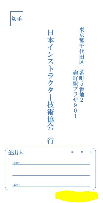 - 認定試験の返送用封筒を用意して、当日の日付をスタンプで押す。封筒の表面の右下あたり(画像の黄色の部分あたり)に押す。