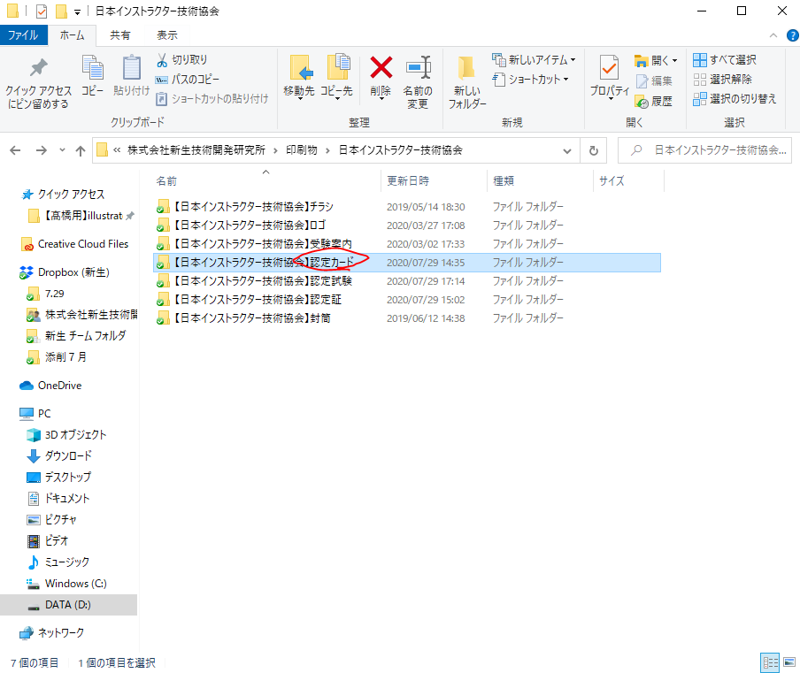 認定カードのデータは、各協会のフォルダの認定カードフォルダに入っている。